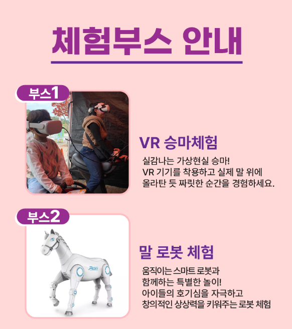 - 체험부스 이용 : 현장 결제 가능 (1회 2,000원 / 패키지권 5,000원)