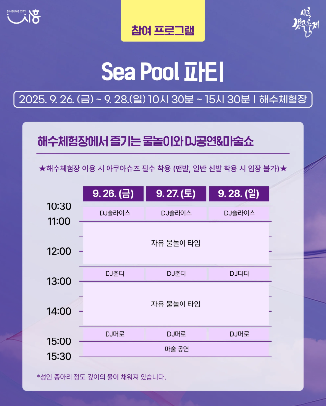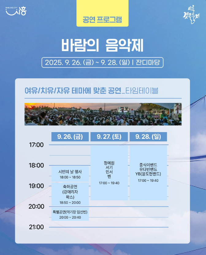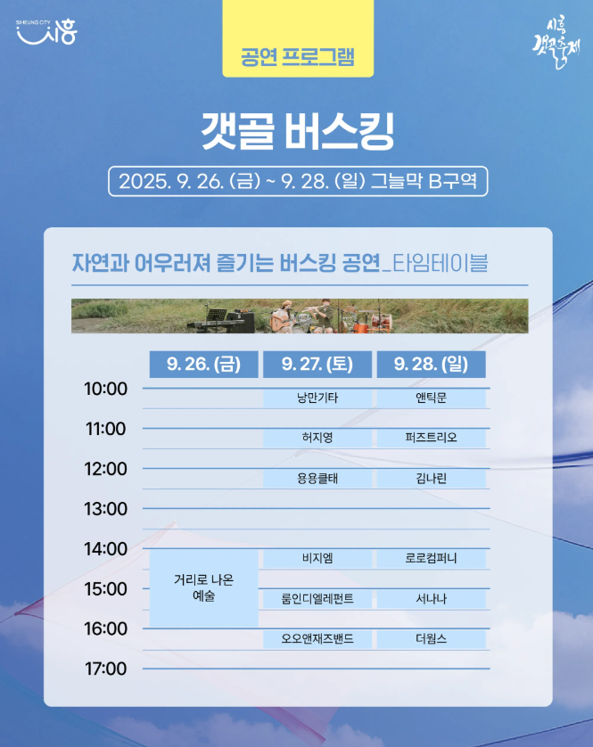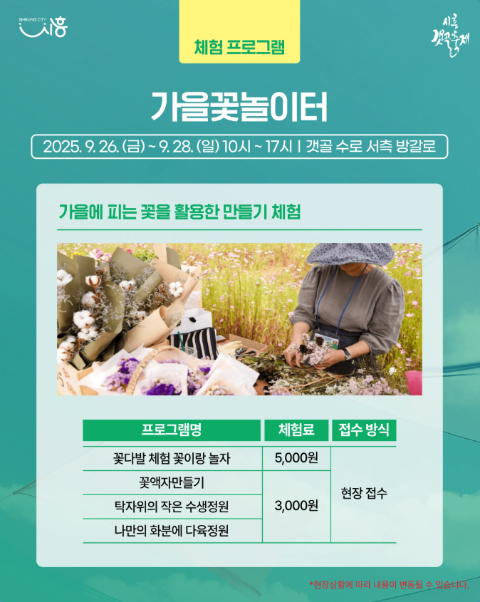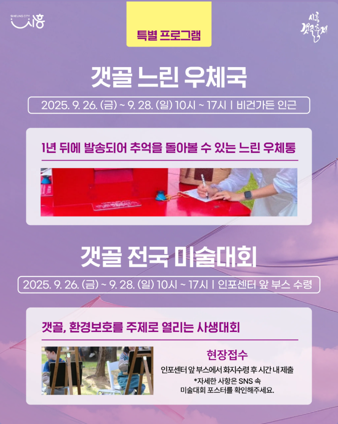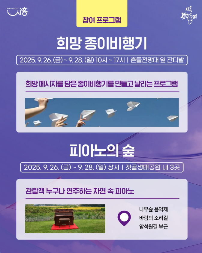| 2025. 9. 26.(금) ~ 9. 28.(일) | 시흥 갯골생태공원 | 시흥시 | 무료 (일부 체험 유료) |