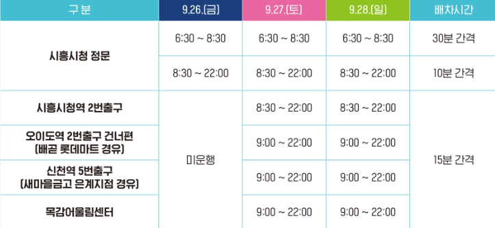 - 셔틀버스 │ 25.09.26(금)~09.28(일) 06:30~22:00