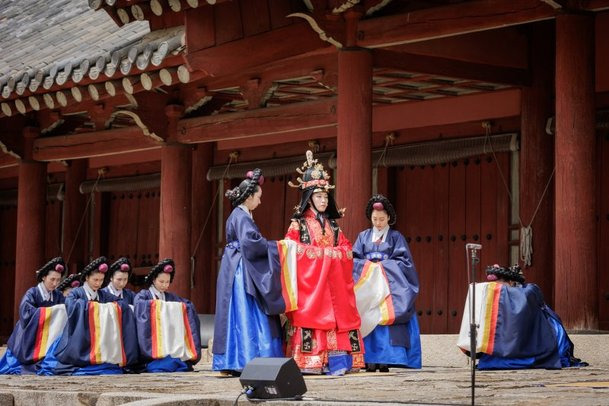 - 당시 신하는 왕비의 얼굴을 볼 수 없었기 때문에 문무백관들은 왕비가 입장하기 전 모두 퇴장합니다.