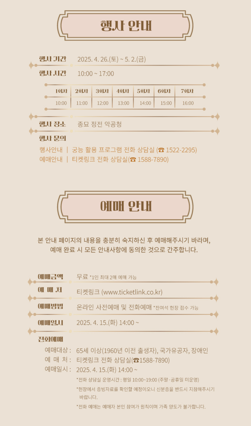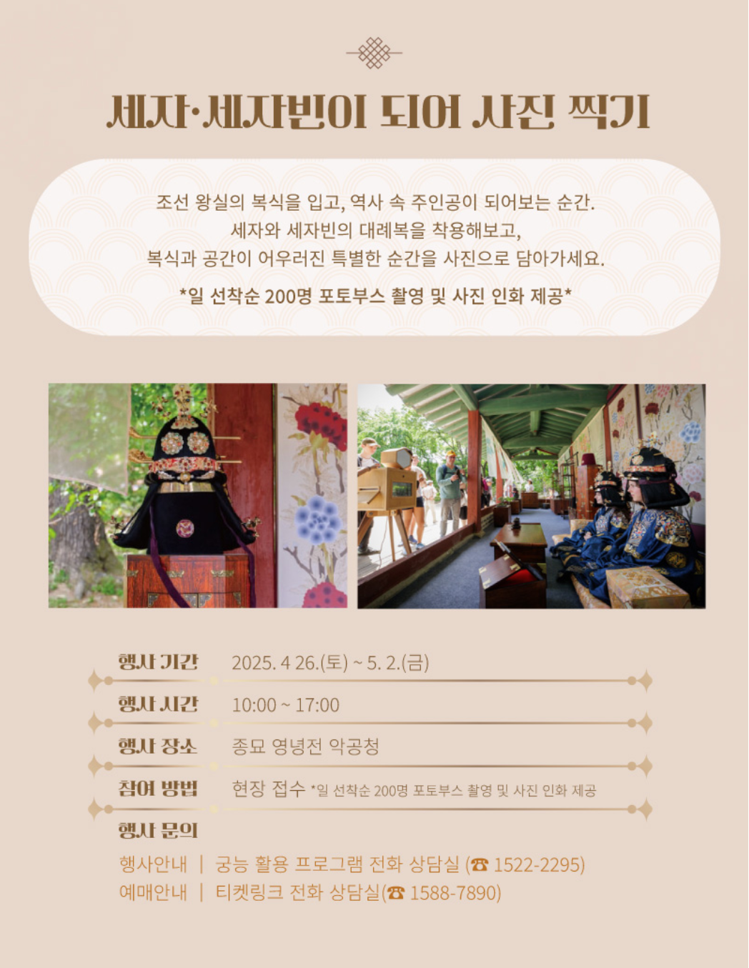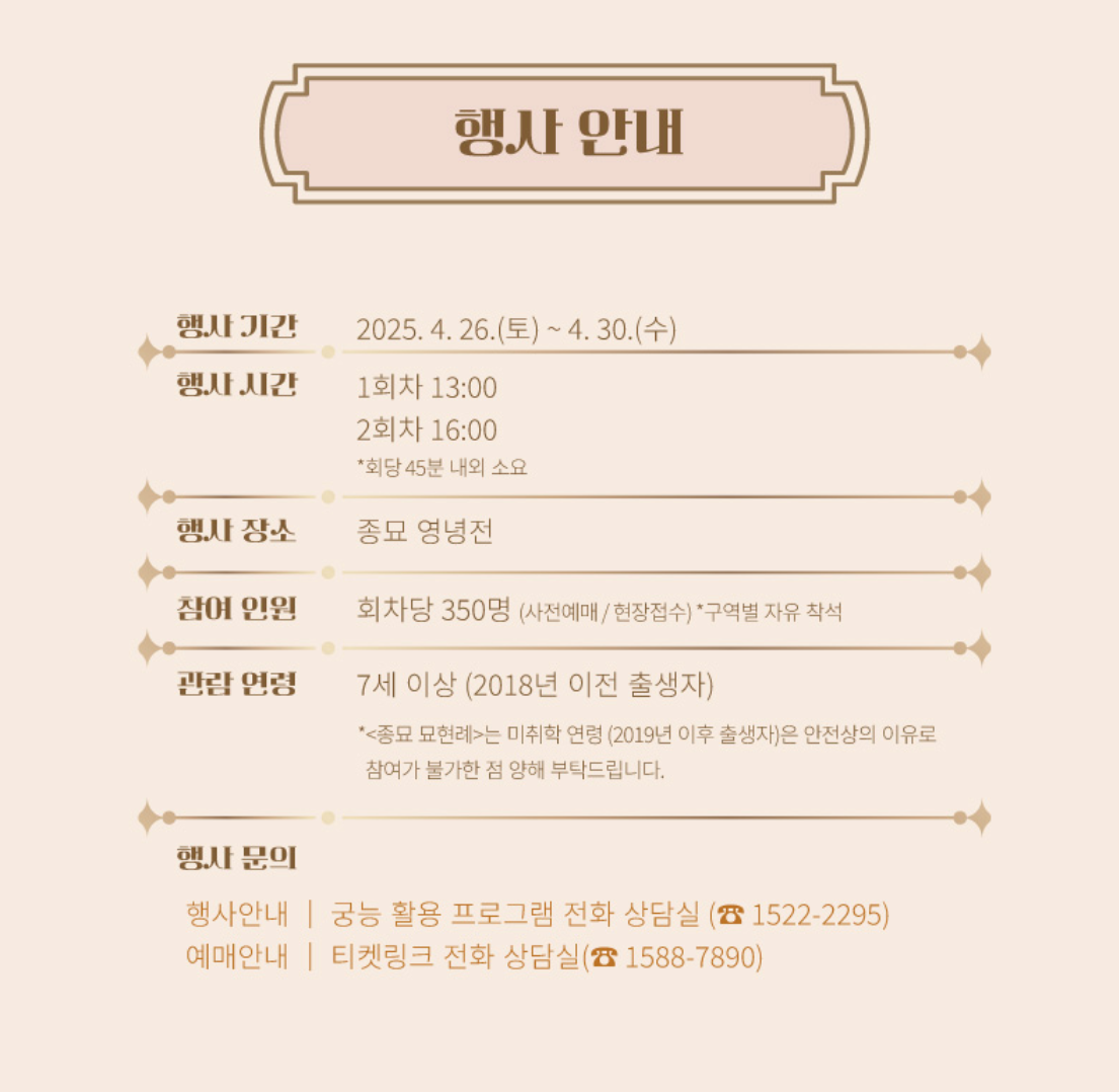 - 행사문의 : 궁능 활용 프로그램 전화 상담실(1522-2295)