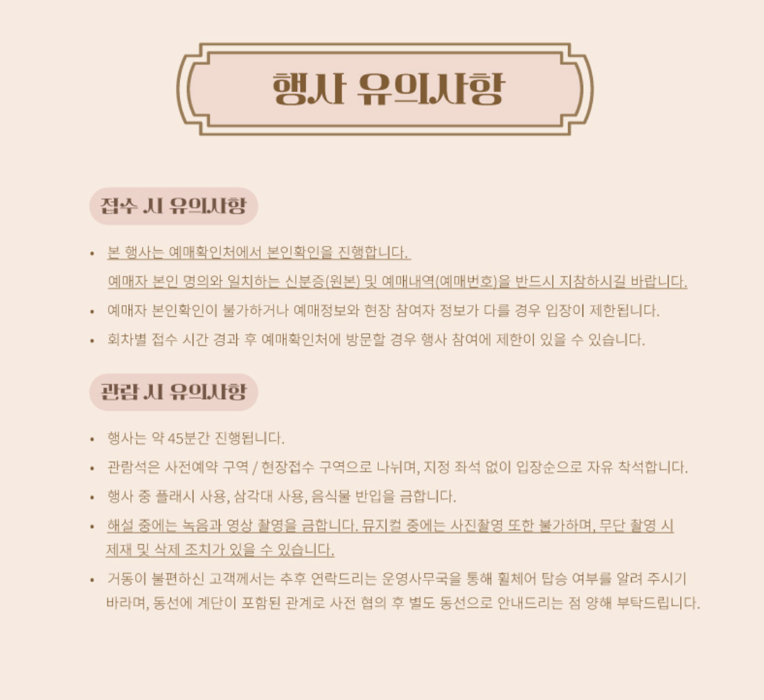 - 행사시간 : 1회차 13:00 / 2회차 16:00 * 회당 45분 내외 소요