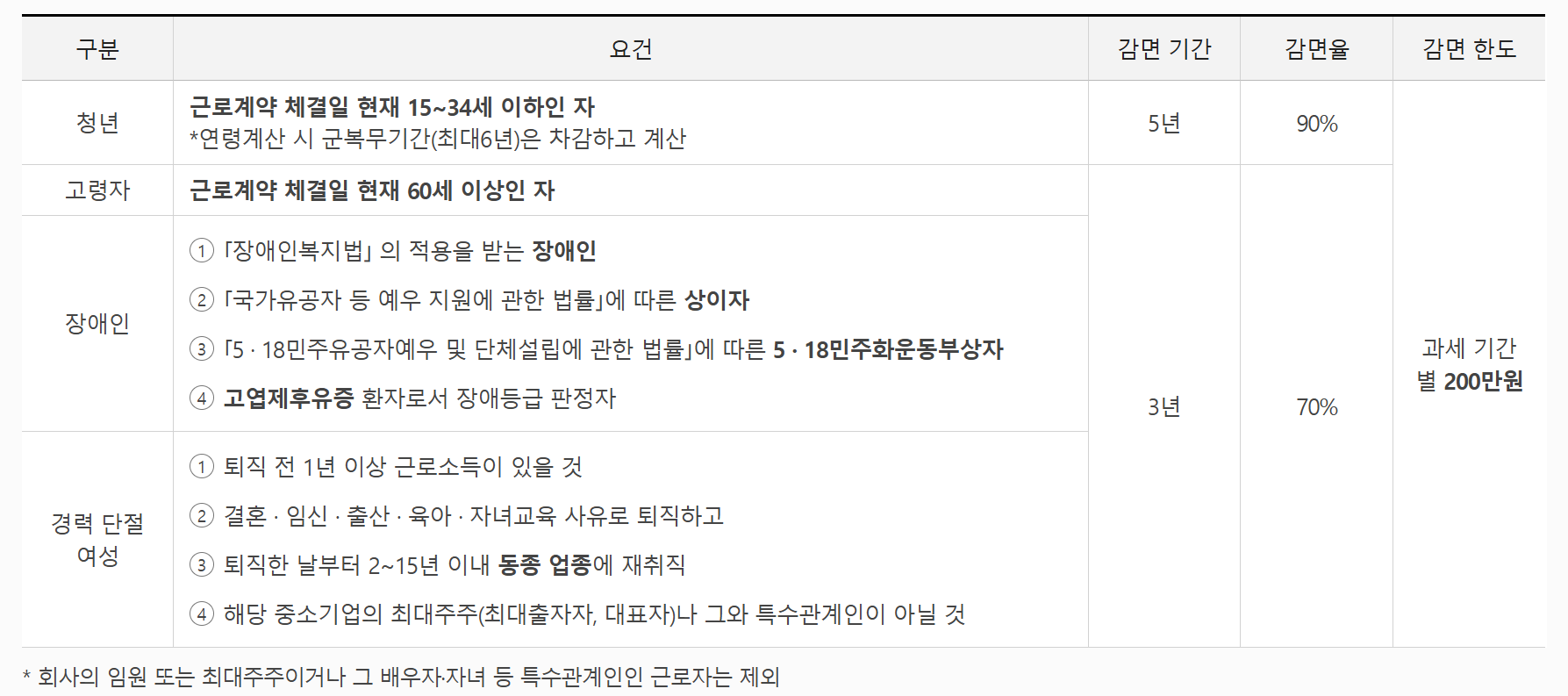 - 소득세 감면은 취업일로부터 적용됩니다.