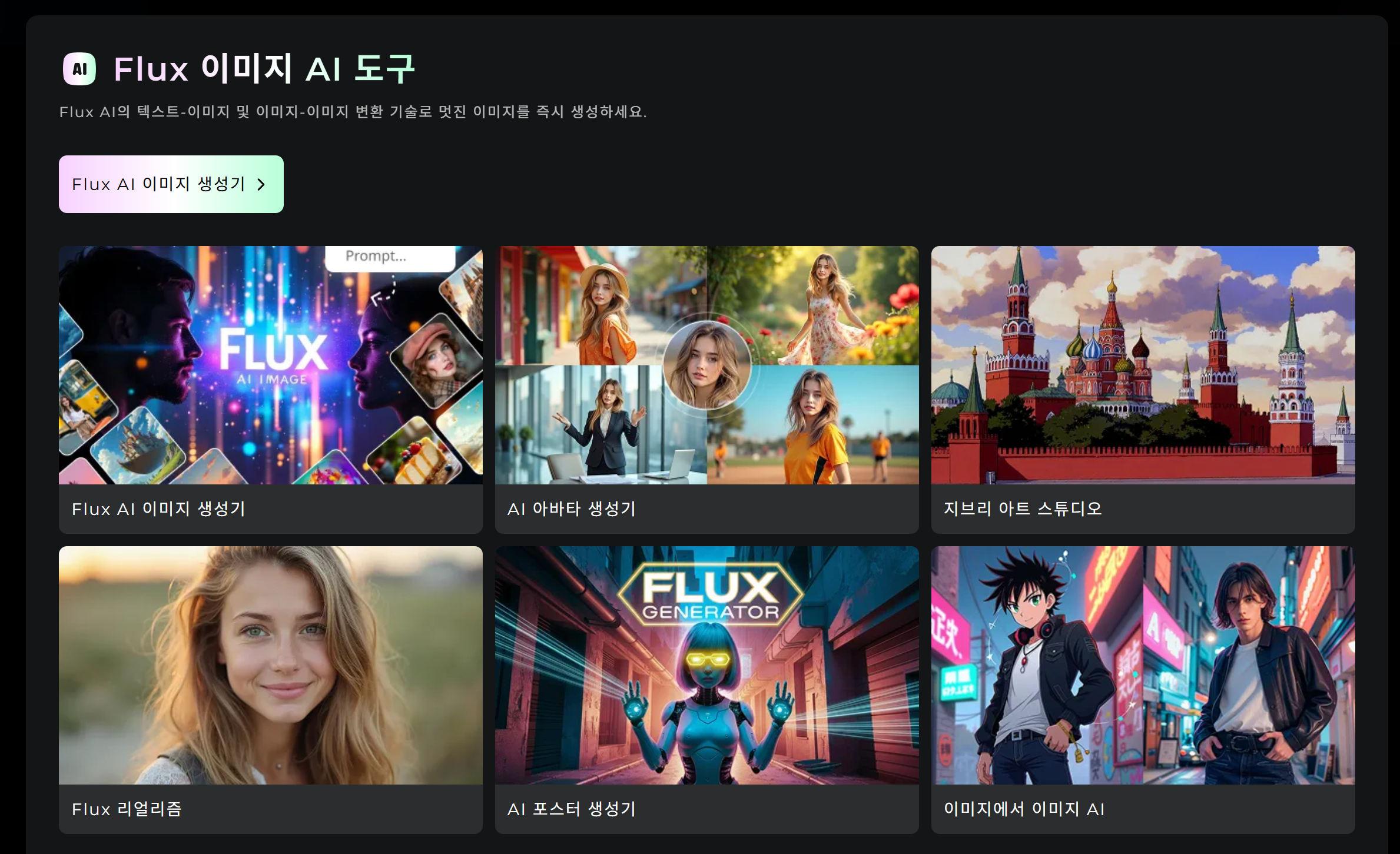 flux는 명령어 없이 사진을 업로드하면 다채로운 스타일의 이미지를 생성해주는 플랫폼입니다.