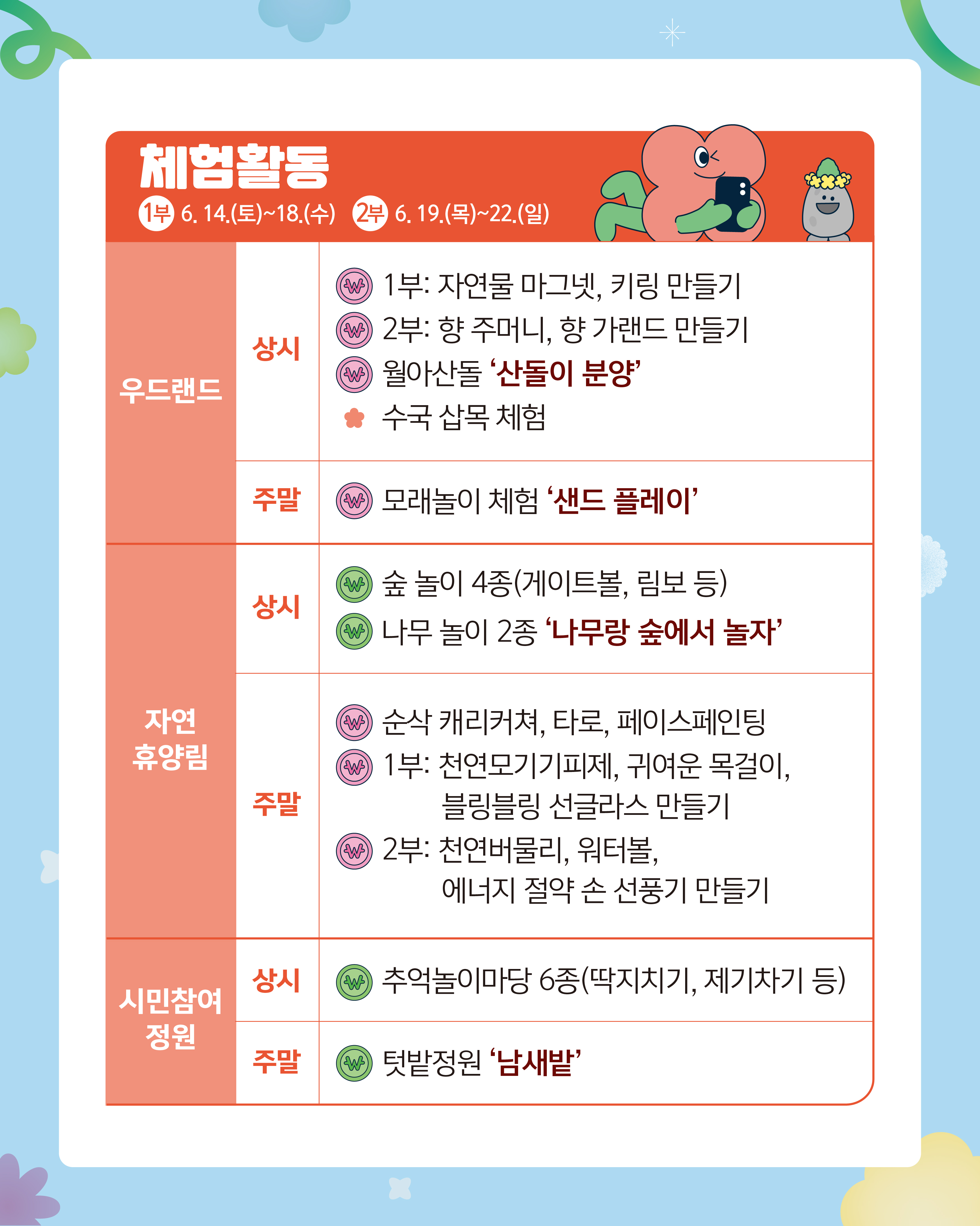 ※모든 행사 및 체험활동 등은 선착순으로 운영됩니다.