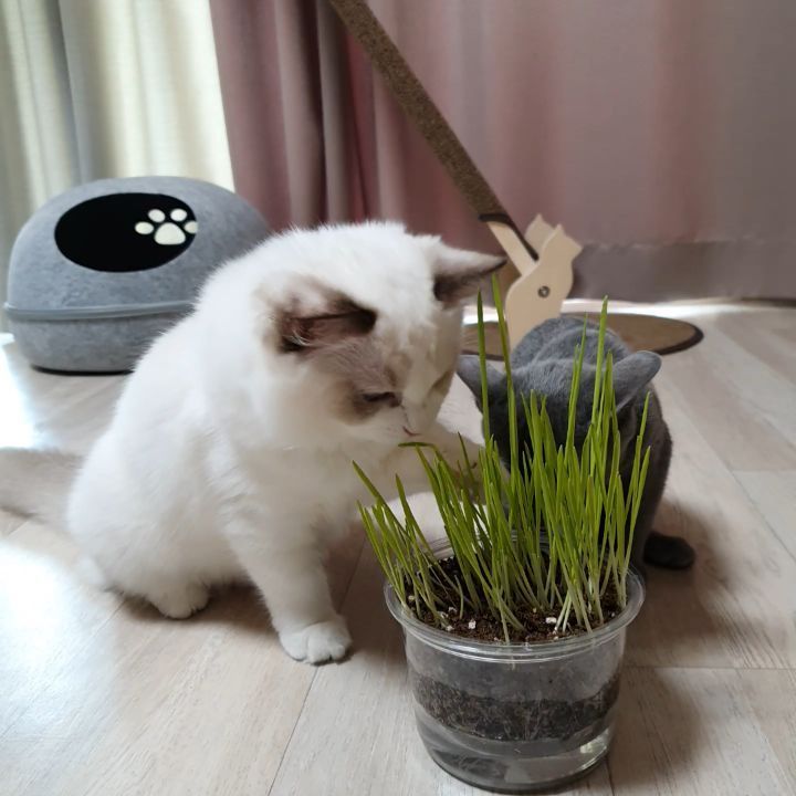 캣 그래스는 보통 귀리, 보리, 또는 밀 잔디의 혼합으로, 고양이 섭취를 위해 특별히 재배됩니다. 소화를 돕고 식이섬유를 추가하여 헤어볼 예방에 도움을 줍니다. 작은 화분에 캣 그래스를 심어 햇볕이 잘 드는 곳에 두면 고양이가 안전하게 뜯어먹을 수 있습니다.