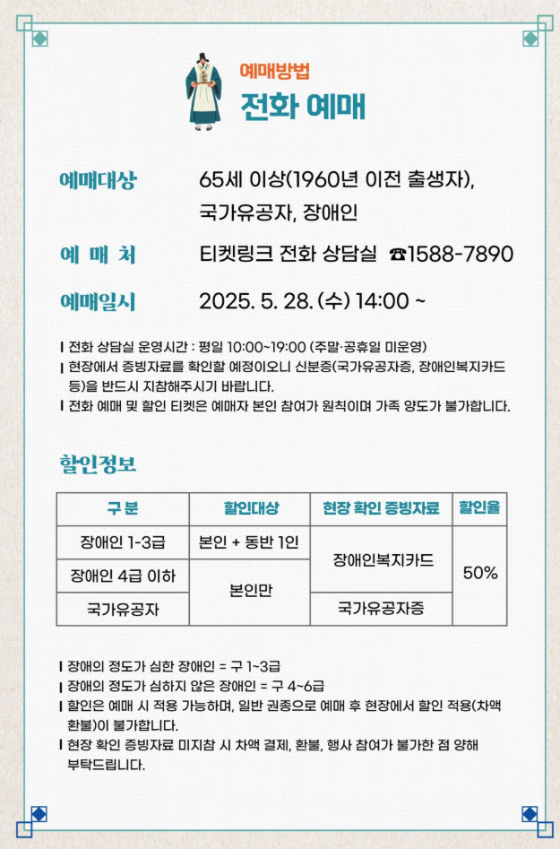 - 일반예매(잔여석)전환 : 2025년 05월 28일(수) 14:00