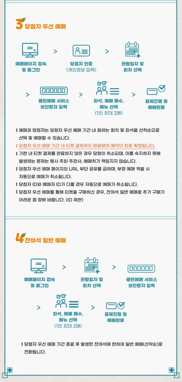 - 당첨자 대상 예매기간 : 2025년 05월 23일(금) 14:00 ~ 05월 26일(월) 23:59