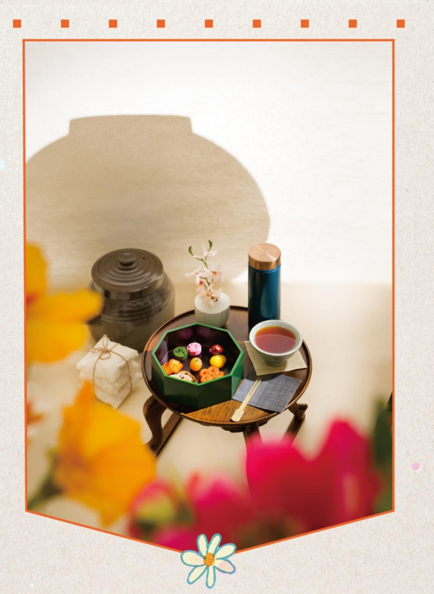 - 배란 세트 : 다과 6종, 약차 1종 / 배란, 다식, 금귤정과, 연근부각, 약과, 대추초, 밤초
