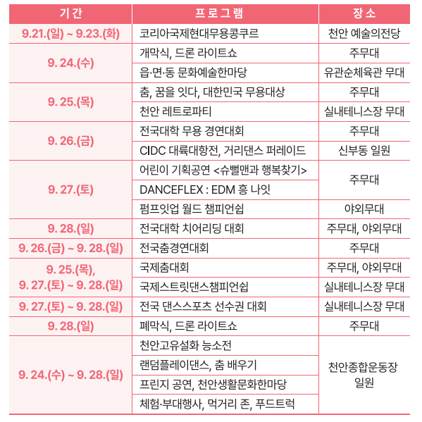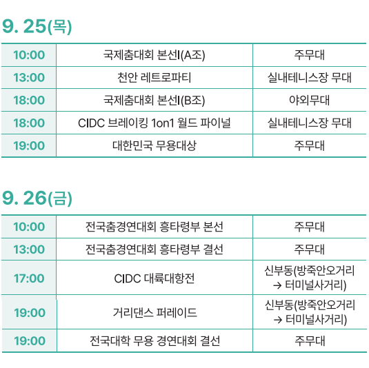 - 축제명 : 천안흥타령춤축제 2025 (Cheonan World Dance Festival)