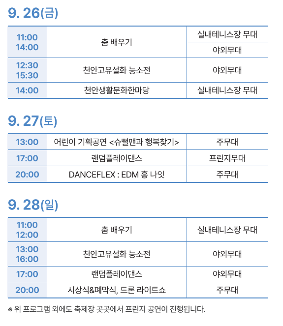 👉 이외에도 다양한 랜덤플레이댄스, 체험부스, 먹거리존, 푸드트럭 등이 준비되어 있습니다!