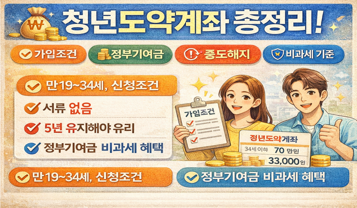 ⚠️청년도약계좌 1·3·5년 해지 타이밍 총정리|해지 방법·서류·처리기간·주의사항청년도약계좌는 정부기여금과 이자 비과세 혜택 덕분에 청년 재테크 상품 중 가장 주목받고 있지만,막상