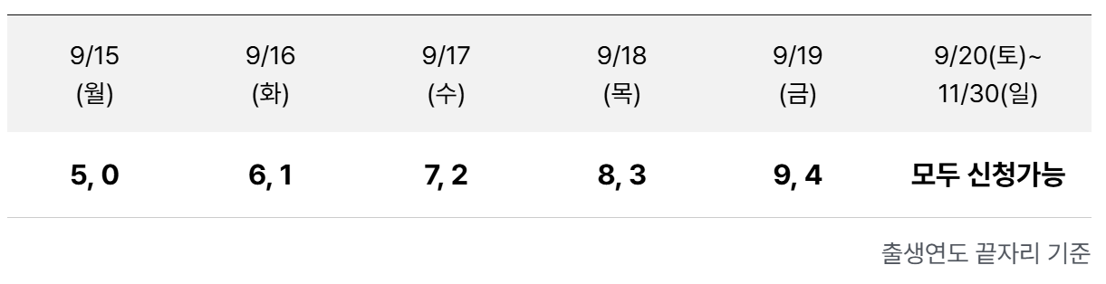 - 신청 첫 주는 출생연도 끝자리 기준 5부제 운영
