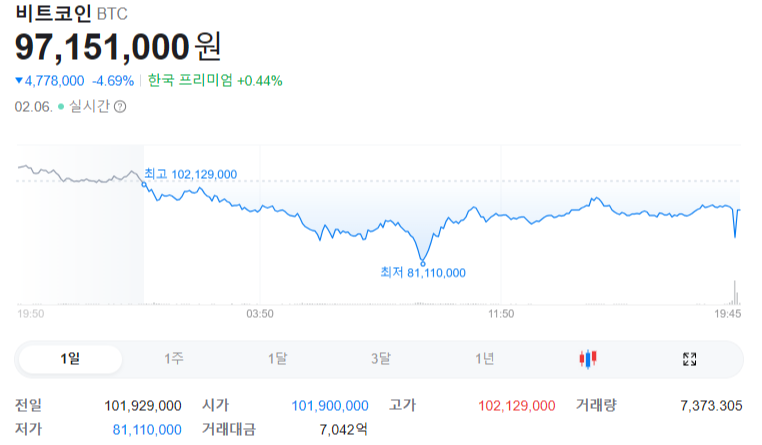 1. 2월 6일 비트코인 가격 한눈에 보기