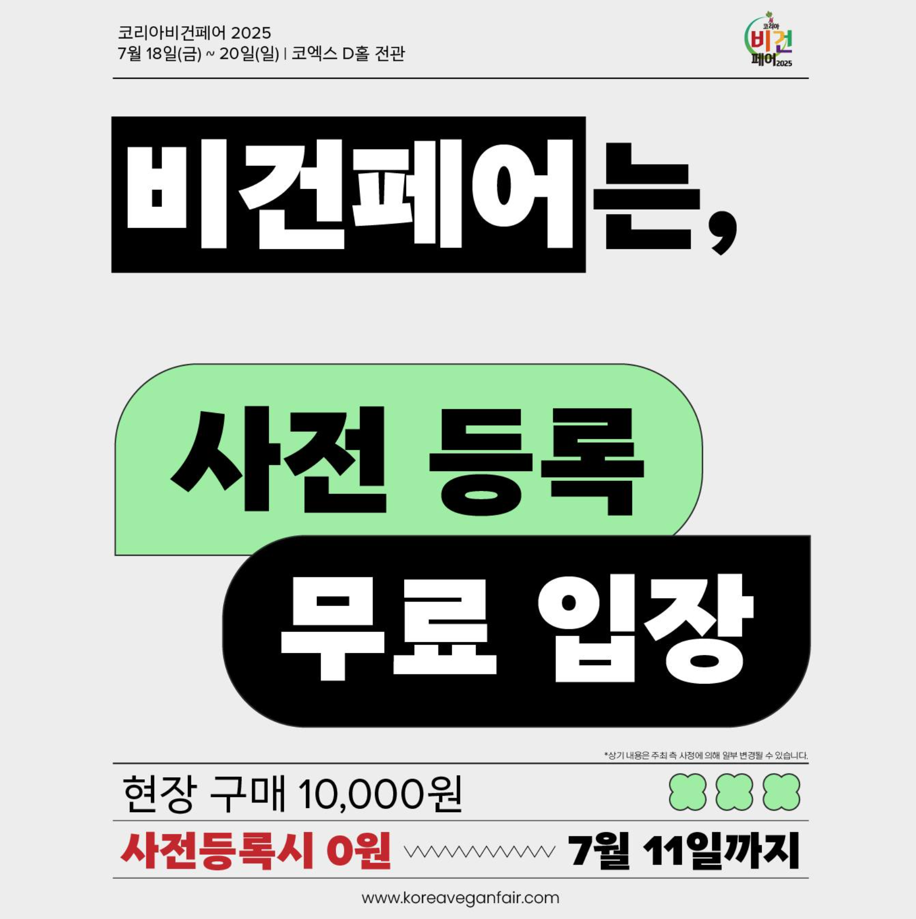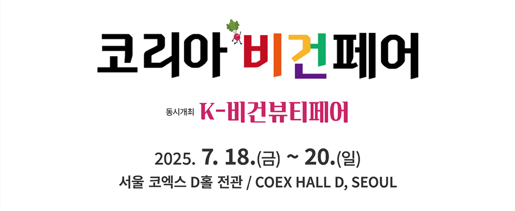 코리아비건페어 2025가 올해 7월 18일부터 20일까지 3일간 코엑스 D홀에서 개최됩니다.