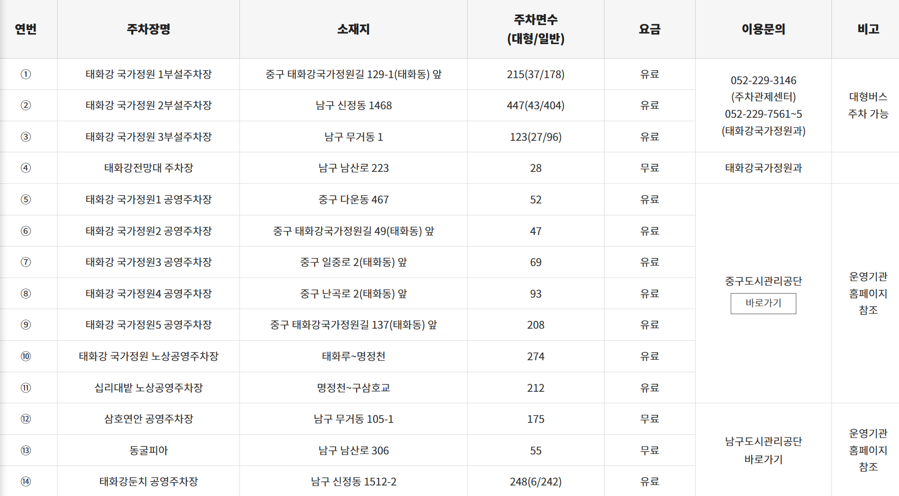 - 주차장: 태화강 국가정원 일원 공영주차장 14개소 (2,281면)