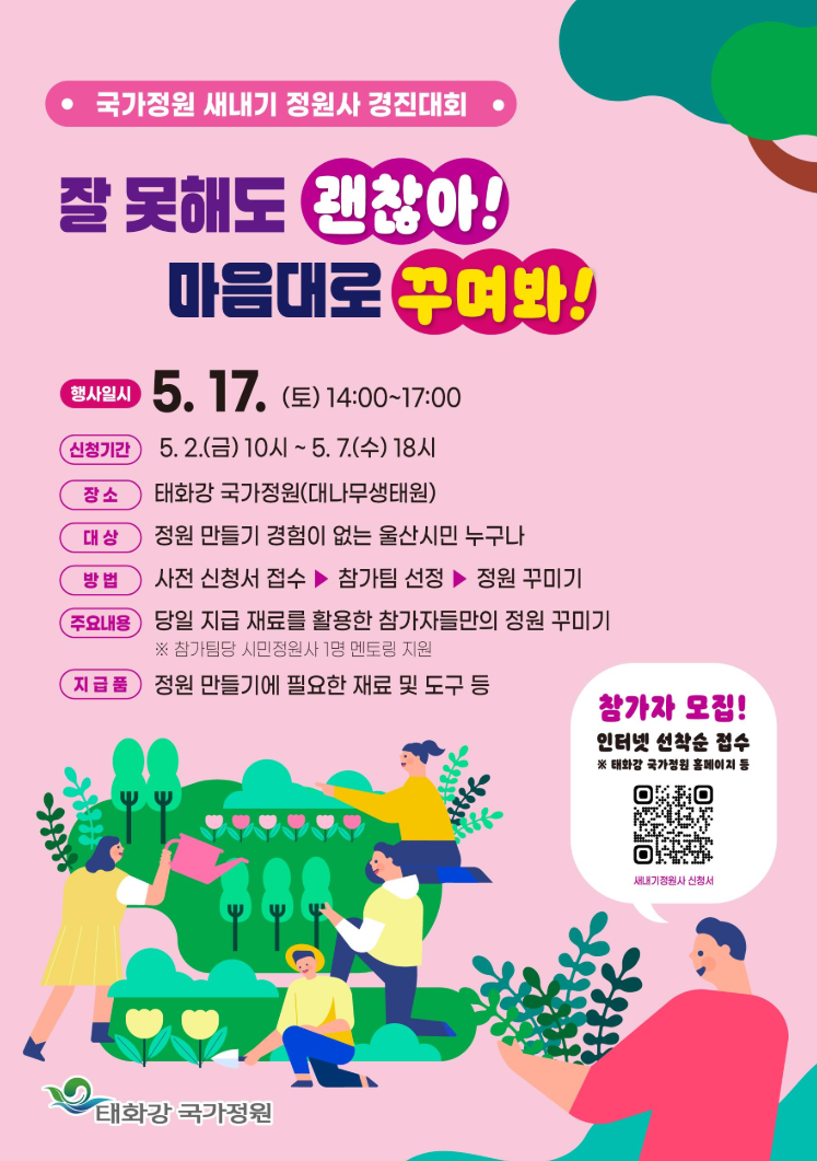 - 새내기 정원사 경진대회(대나무생태원) : 5.17(토) 14:00~17:00 / 태화, 삼호지구