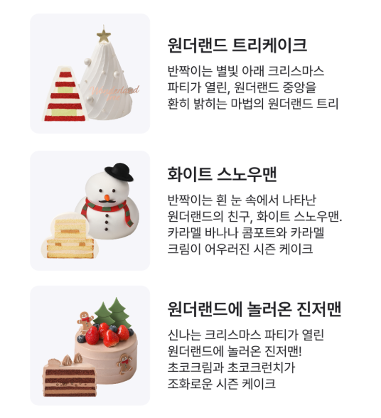 특히 원더랜드 트리케이크는 사진만 봐도 크리스마스 분위기 100%!