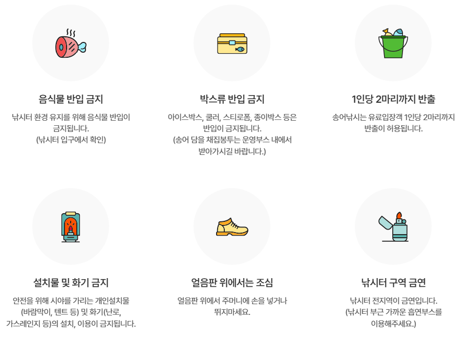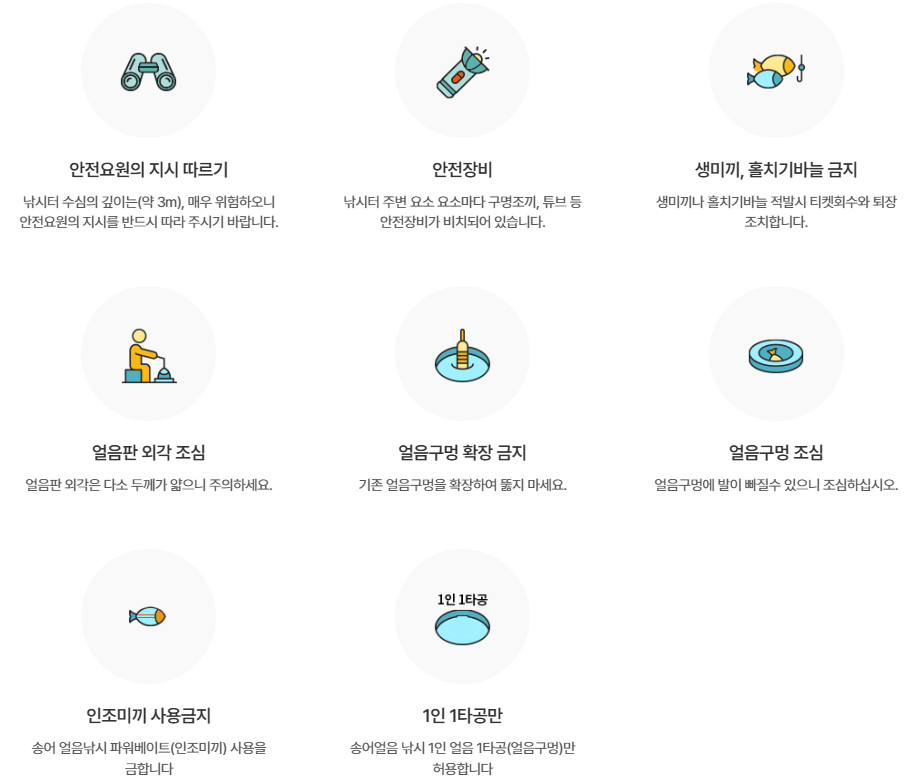 | 얼음낚시 | 송어 얼음낚시(1인 2마리) | 성인 30,000원 / 소인 15,000원 | ||