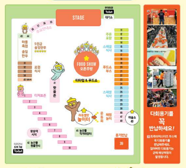 | 특징 | 전국 대표 맛집 × 셰프 푸드쇼 × 인스타 이벤트 × 플리마켓 × 아동 체험존 |