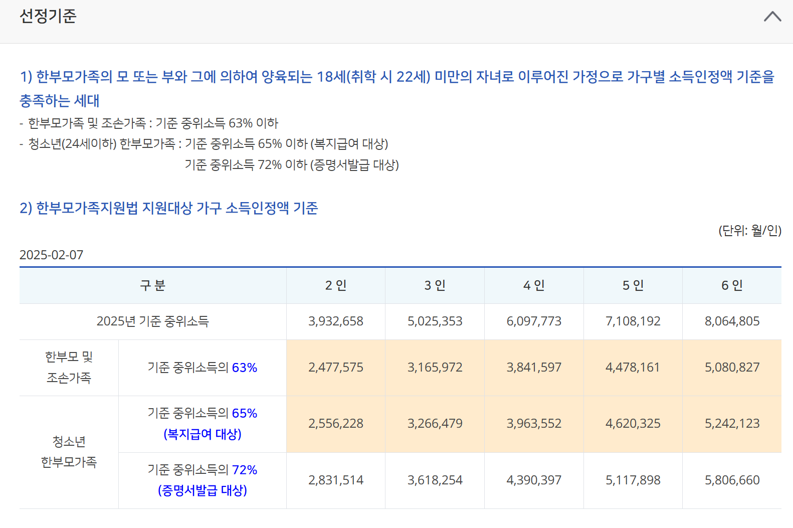 - 가정의 소득 기준 : 중위소득의 일정 비율 이하인 가정이 지원 대상입니다. 소득 기준은 매년 변동될 수 있으므로, 최신 정보를 확인하는 것이 중요합니다.