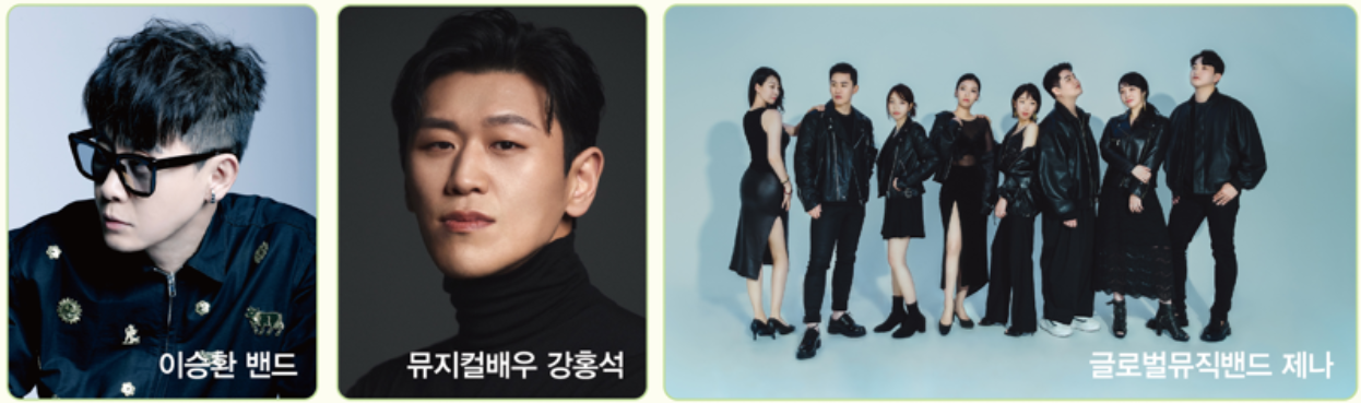 글로벌 팝퍼포먼스 그룹 제나, 가수 이승환 밴드, 뮤지컬 배우 김용석 등