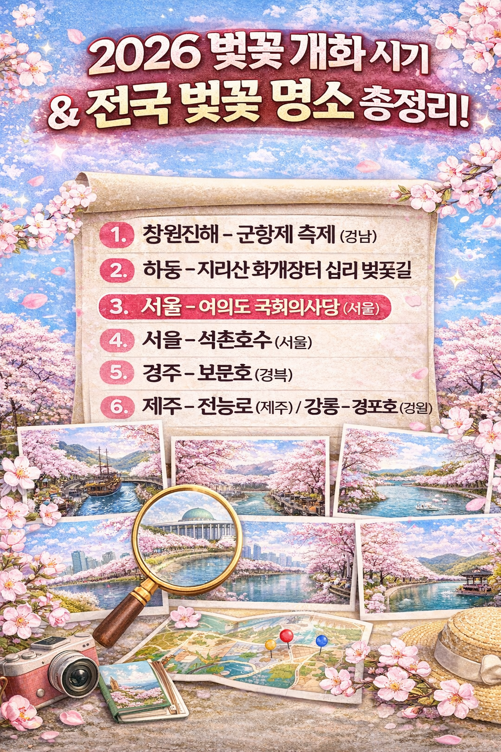 🌸 2026 벚꽃 개화시기 & 전국 명소 총정리!