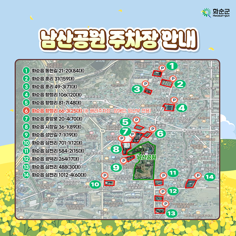 | P6 | 배려주차장(남산공원) | 향정리 66-3 |