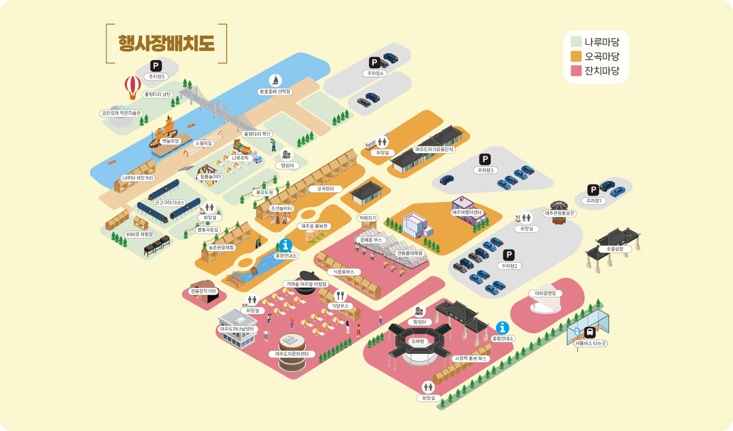 - 조선놀이터 : 진상품을 나르던 옛 나루터에서 조선시대 캐릭터들과의 특별한 놀이체험 (매일 11:00~19:00)