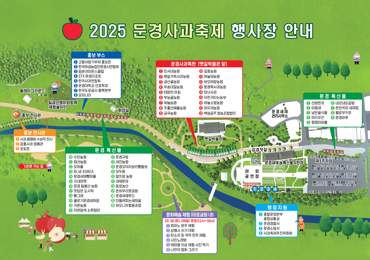 | 2025 문경사과축제 | 2025.10.18(토) ~ 10.26(일) / 9일간 | 문경새재도립공원 일원 | 문경시 / 문경관광공사 / 문경사과축제추진위원회 |