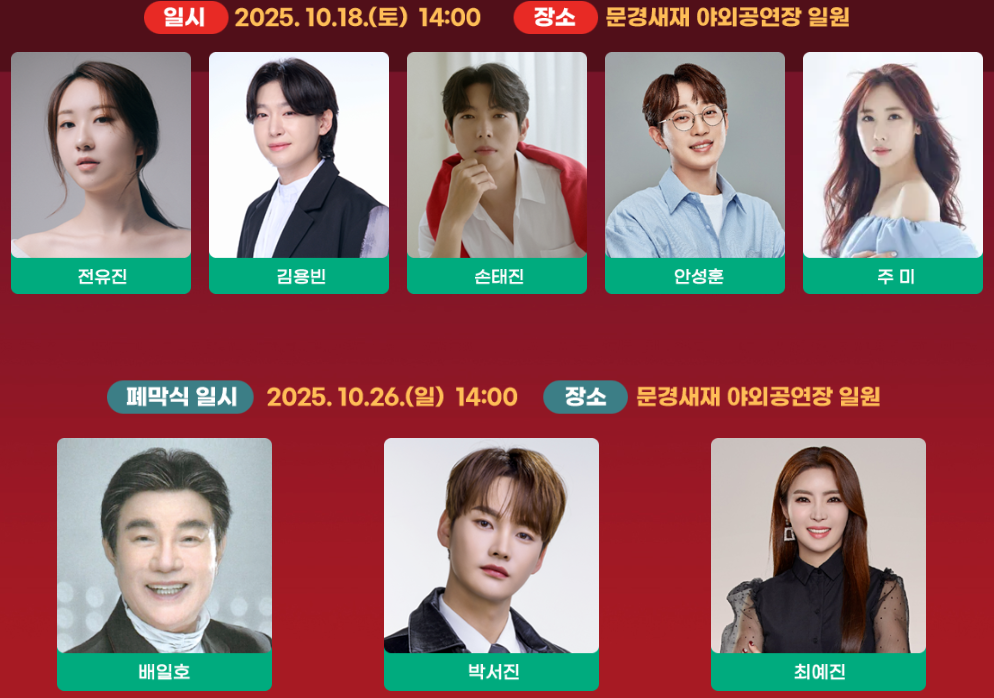 - 🌟 폐막공연 (10.26 일 14:00) — 박서진, 배일호, 최예진, 장혜진, 한혜정