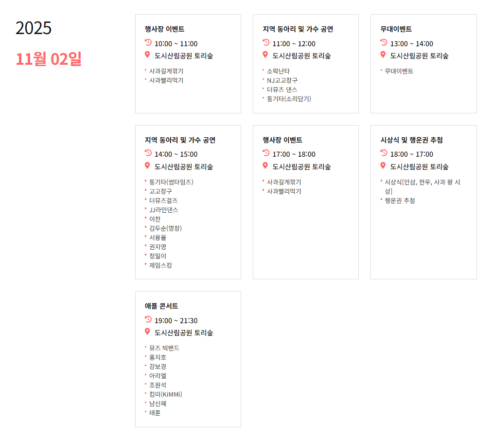| 11.02(일) | 애플 콘서트, 시상식 & 행운권 추첨 🎁 |