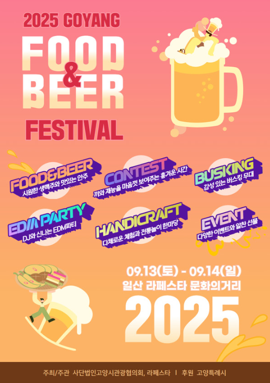 🍺 2025 고양 푸드앤비어 페스티벌, 9월 13~14일 라페스타에서 열린다!