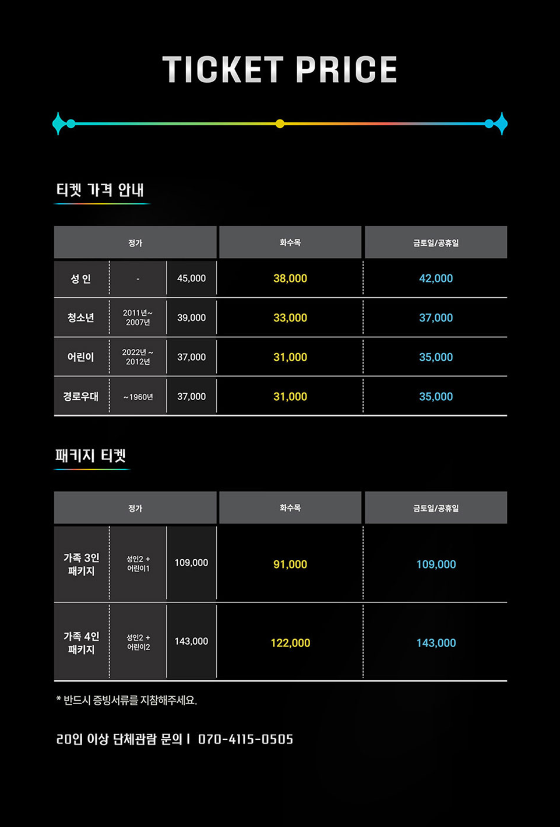 - 입장 인원이 제한되어 있으므로 사전 예매를 권장합니다.
