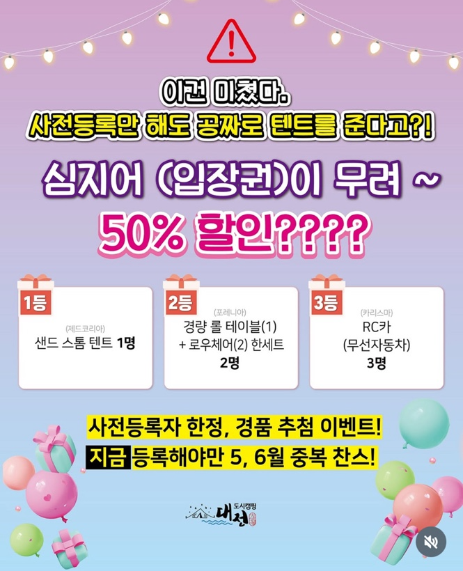 - 추첨진행 : 도시캠핑대전 공식 인스타그램 계정