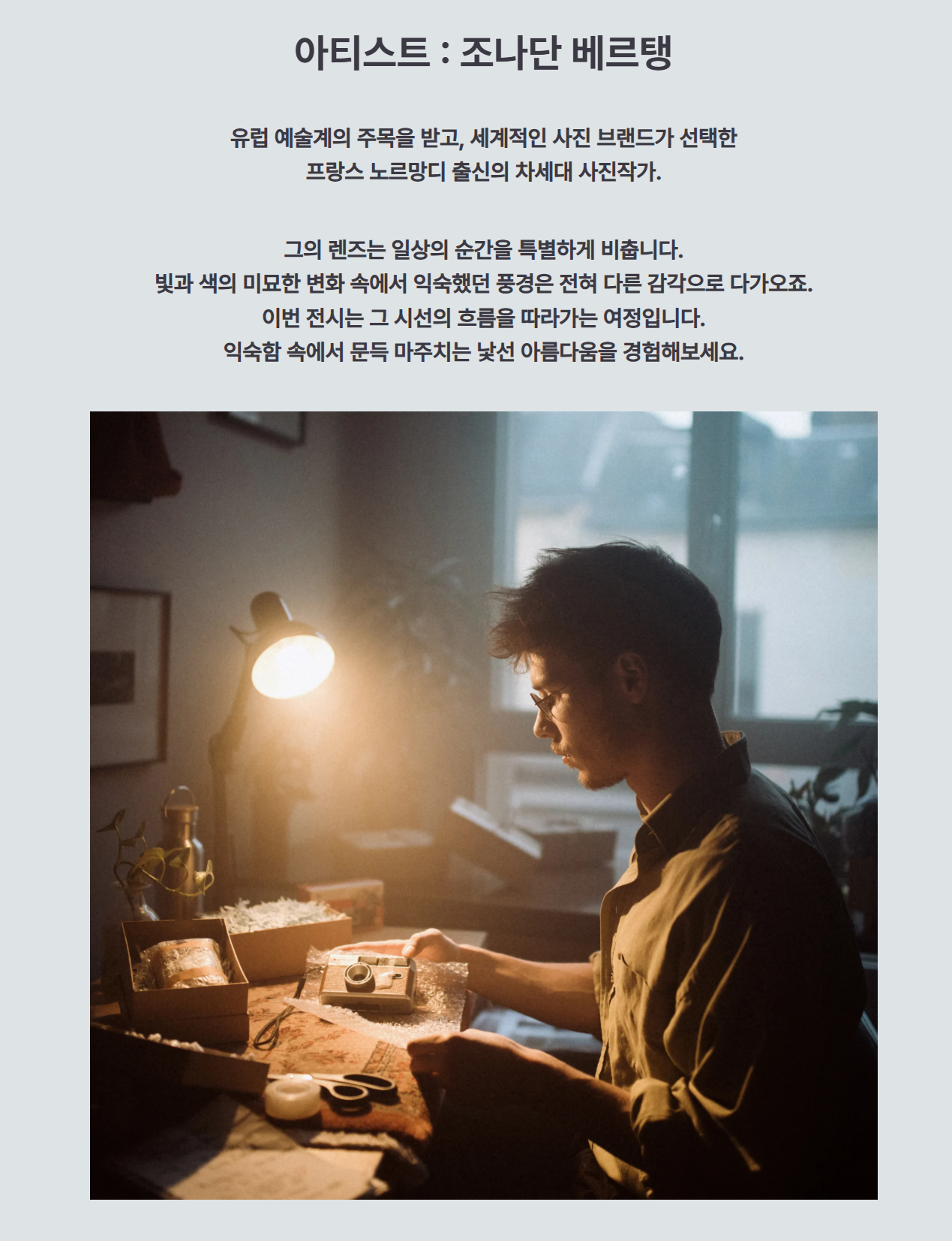 - 전시명: 조나단 베르탱 사진전