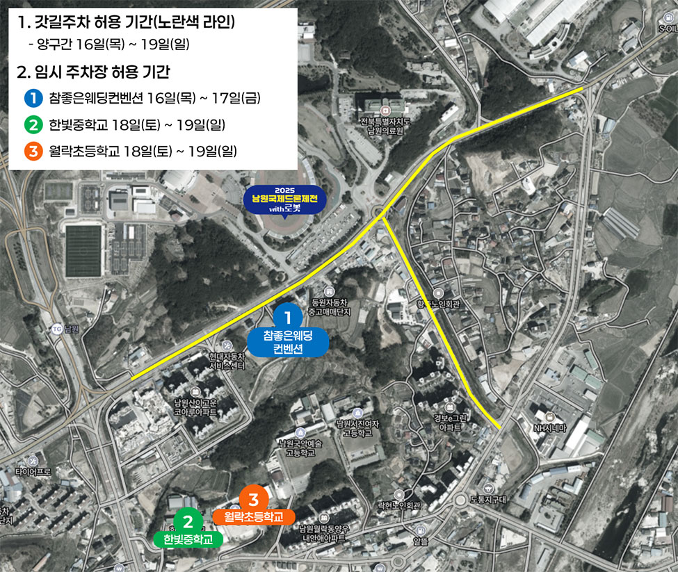 - 주차장은 행사장 인근 참좋은웨딩컨벤션, 한빛중학교, 월락초등학교 임시 개방!