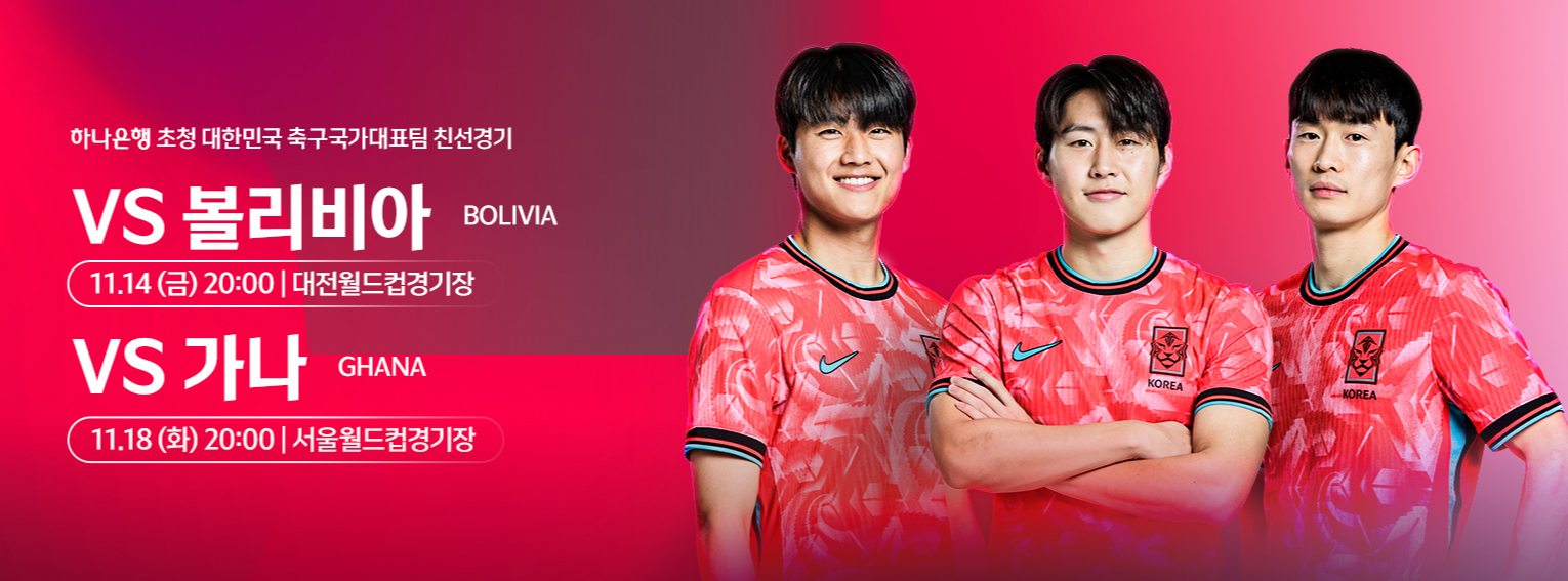 대한민국 축구 국가대표팀, 11월 A매치, 한국 vs 볼리비아, 한국 vs 가나, 티켓 예매 방법, 대전 월드컵경기장, 서울 월드컵경기장