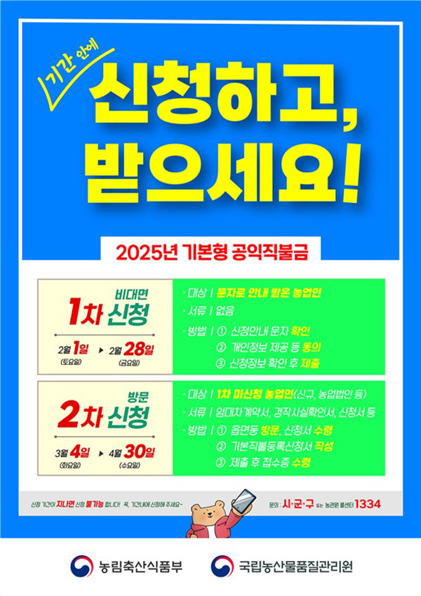 2025년 농업 공익직불금의 신청 기간은 두 가지로 나뉘어 있습니다.