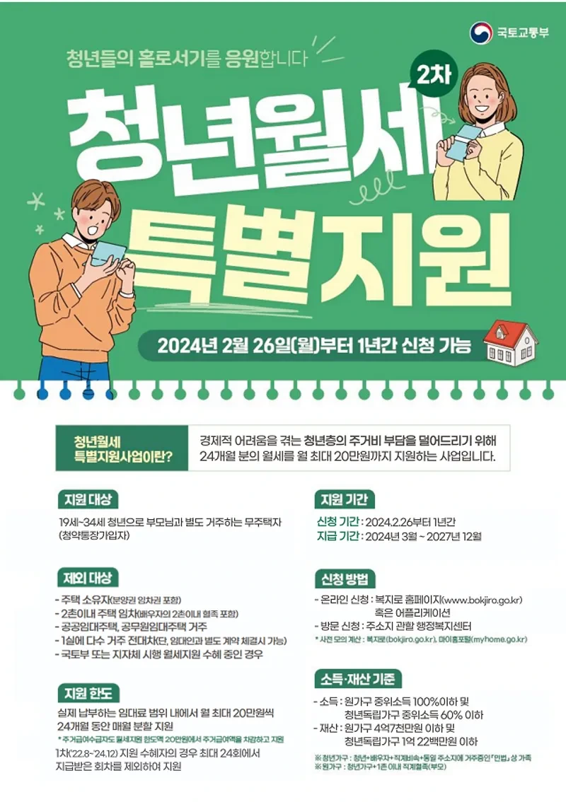 - 국토부 또는 지자체 시행월세지원 수혜 중인 경우 (수혜 종료 후 신청 가능)