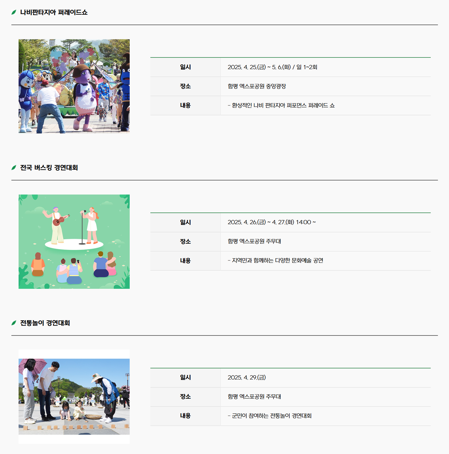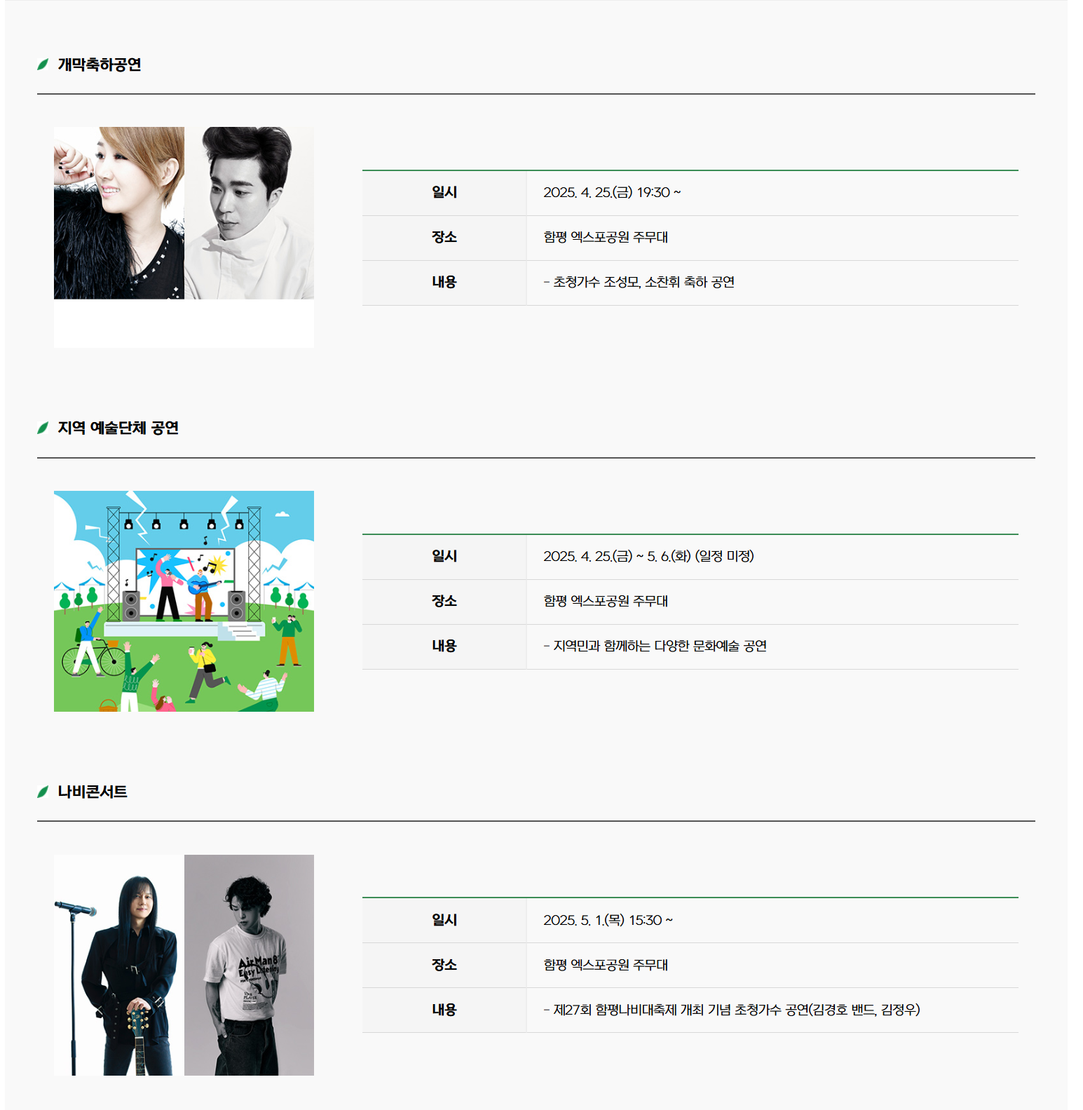 - 축제 장소 : 함평엑스포공원 (전남 함평군 함평읍 곤재로 27)