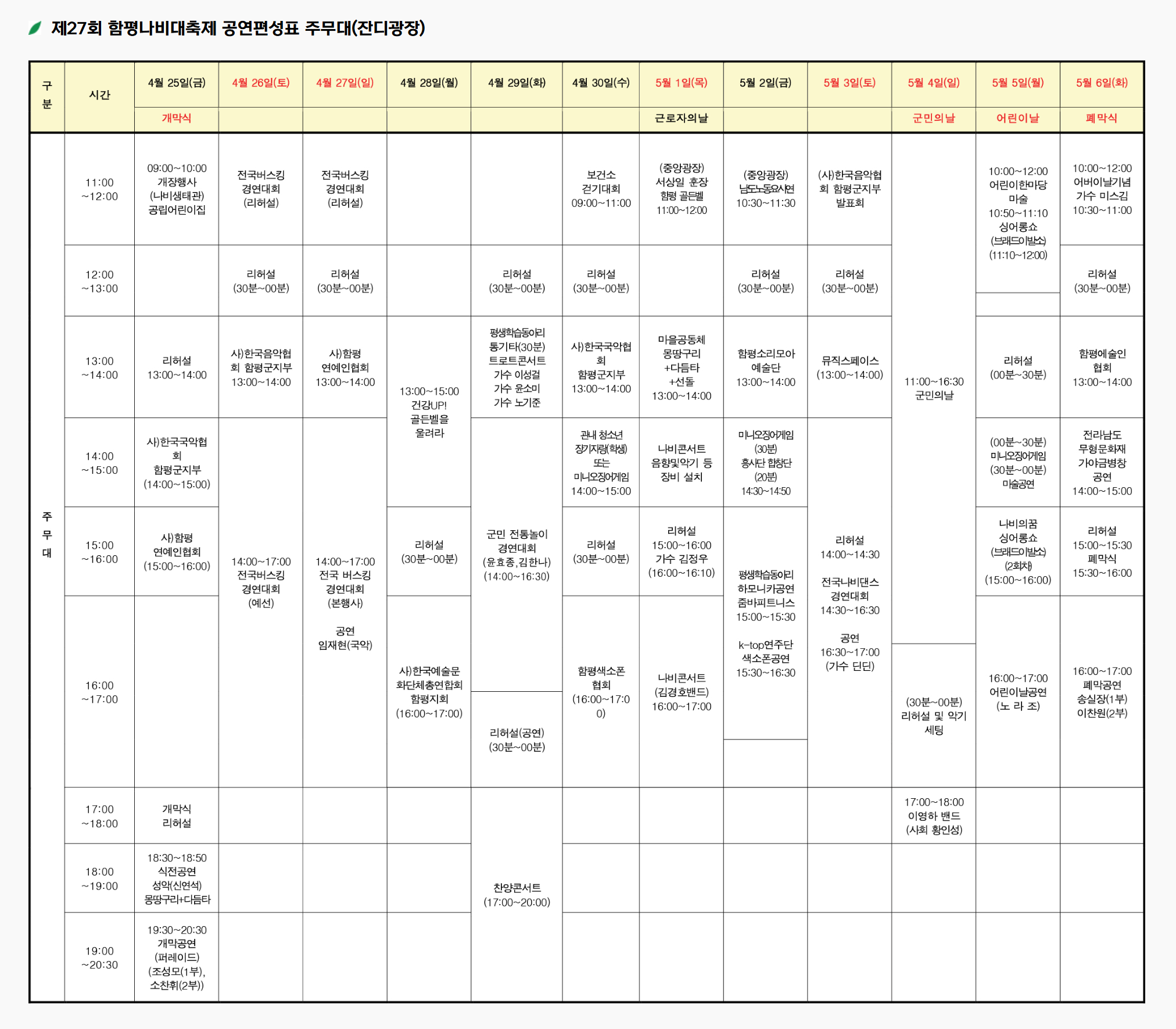 🌼 공연프로그램 🌼