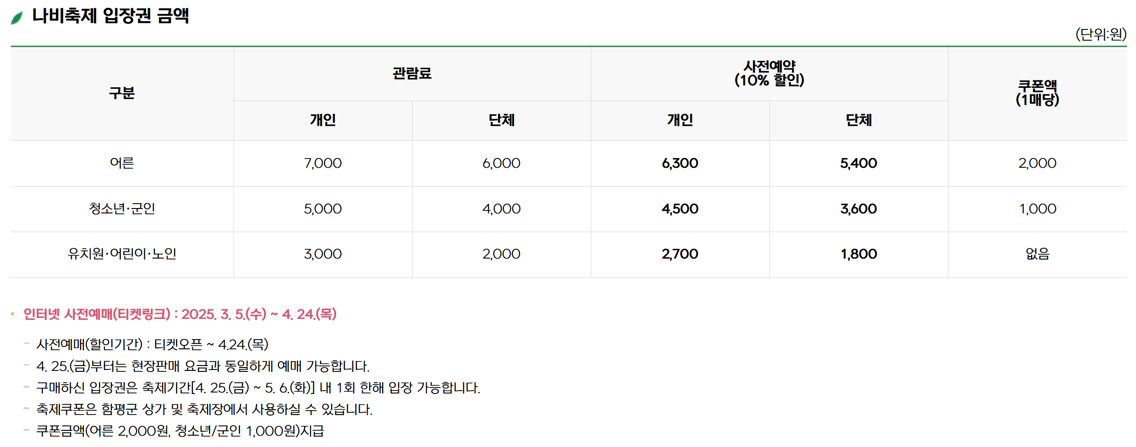 2. 입장료 및 사전 예매