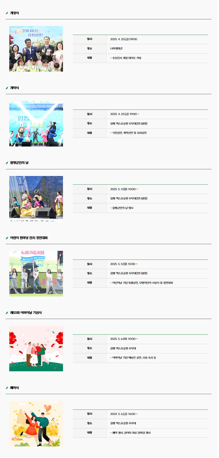 자세한 프로그램 일정은 함평축제관광재단 웹사이트에서 확인하실 수 있습니다.