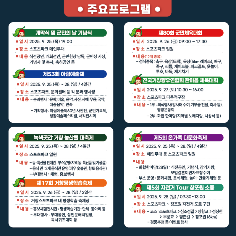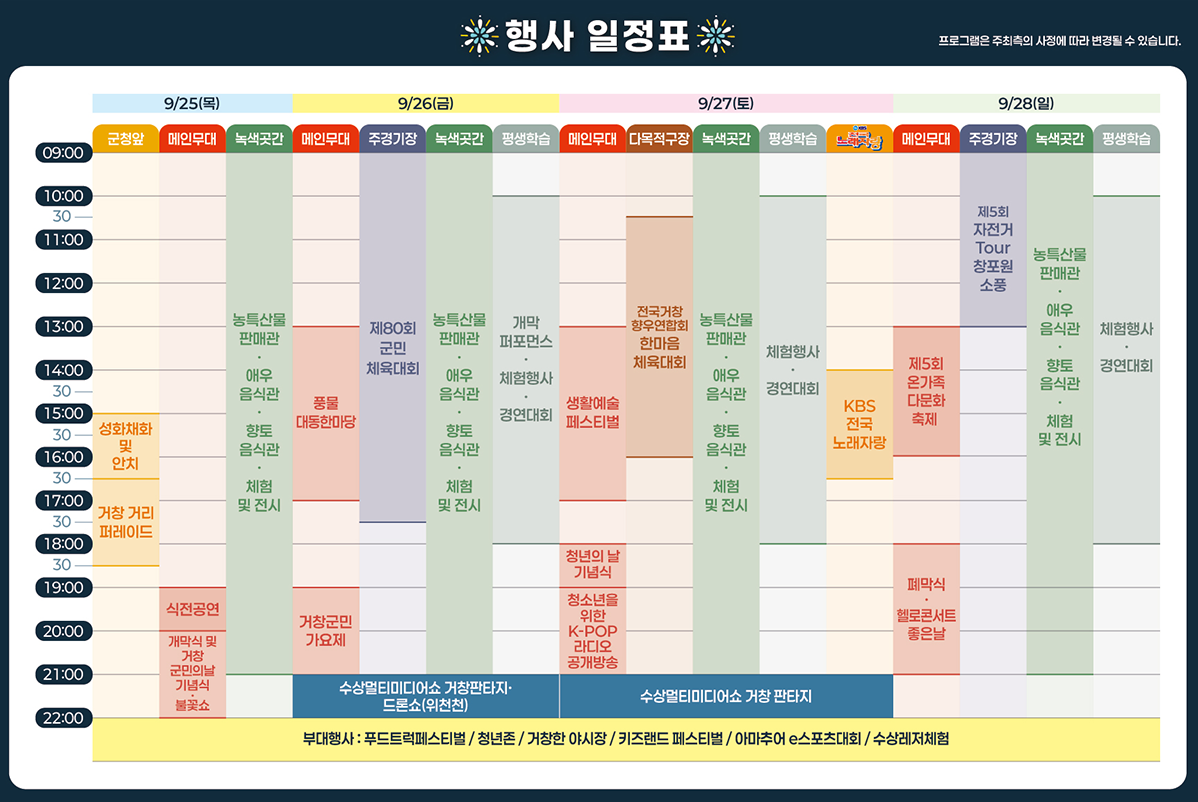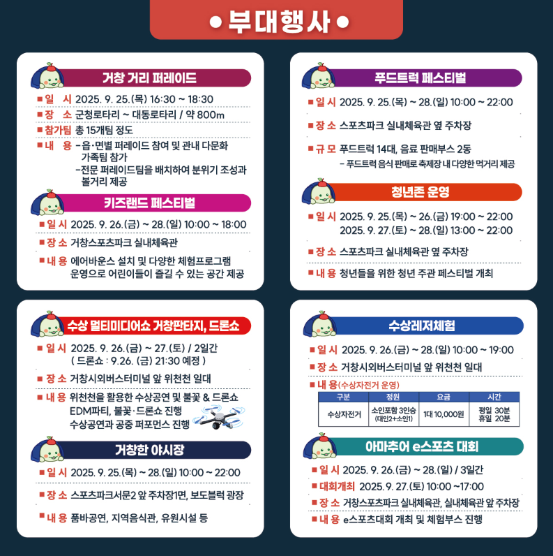- 행사장 : 거창스포츠파크 및 읍내 일원