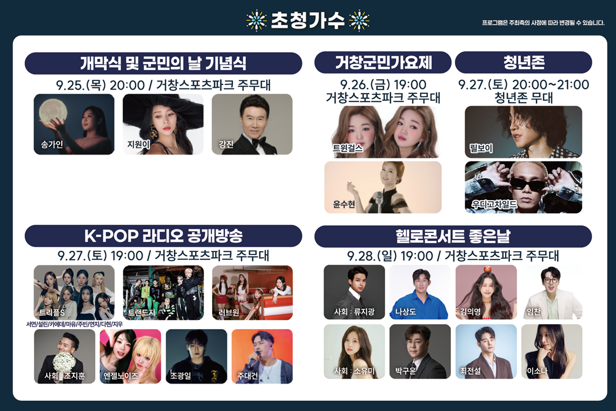 - 거창군민가요제 (9/26, 19:00) 트윈걸스, 윤수현 무대