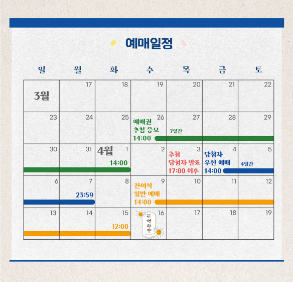 - 잔여석 일반 예매 : 2025. 4. 9.(수) 14:00 ~ 행사 전일 12:00까지