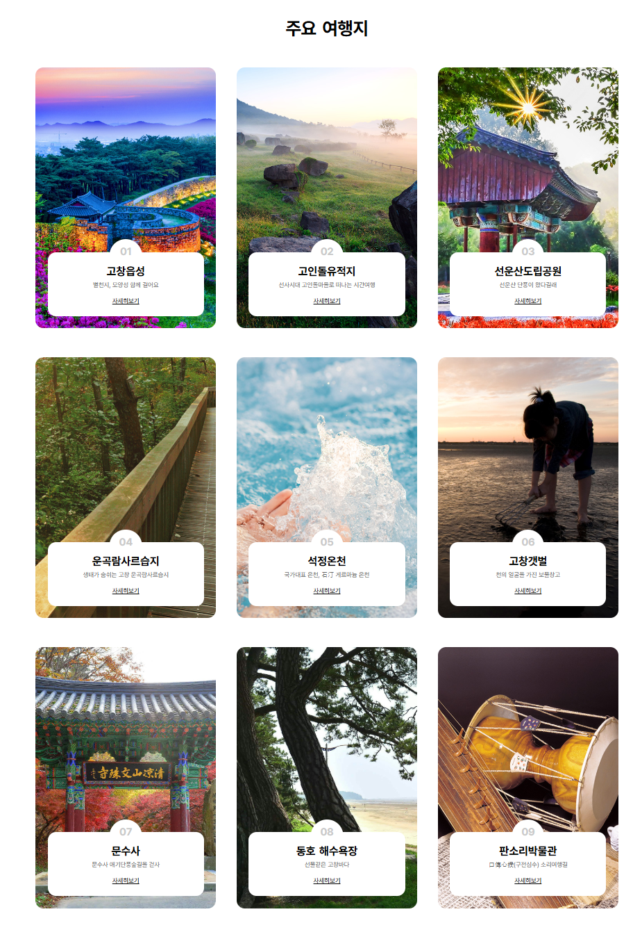 - 선운사 : 고즈넉한 사찰로 자연과 어우러져 방문객들에게 평화로운 분위기를 제공합니다.