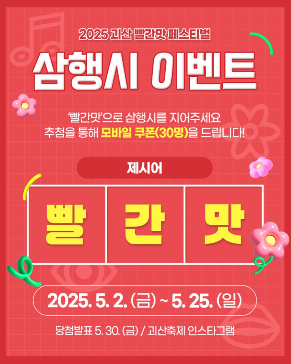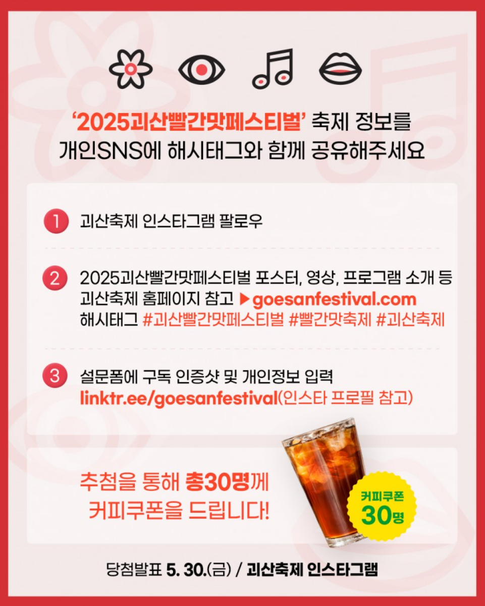 - 축제명: 2025 괴산빨간맛페스티벌 (Goesan Red Taste Festival)