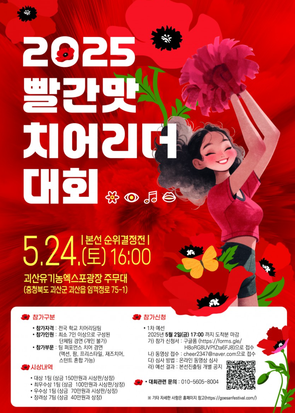 - 폐막식 및 빨간맛 레트로 콘서트: 2025. 5. 25(일) 18:00 괴산유기농엑스포광장 주무대 / 초청가수 코요태, 요요미, 그라나다